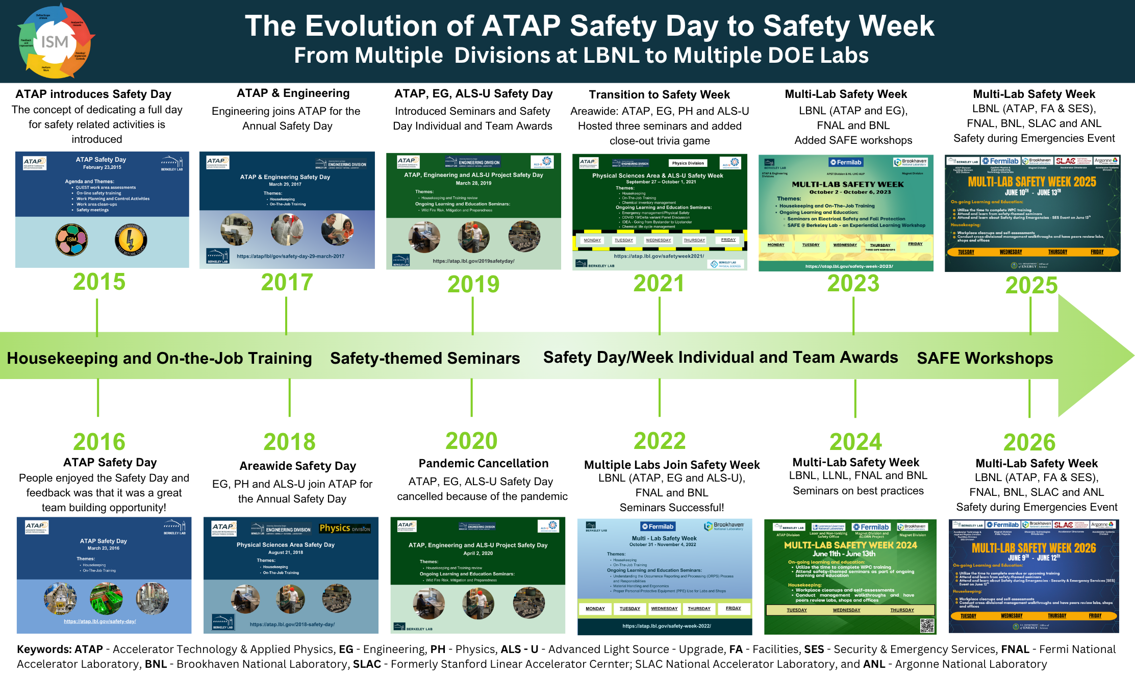 In 2017, Berkeley Lab’s Engineering Division joined ATAP for the annual Safety Day event. The following year, ATAP led a Physical Sciences Area-wide Safety Day with participation from the Physics and Engineering Divisions and the Advanced Light Source Upgrade (ALS-U) Project.