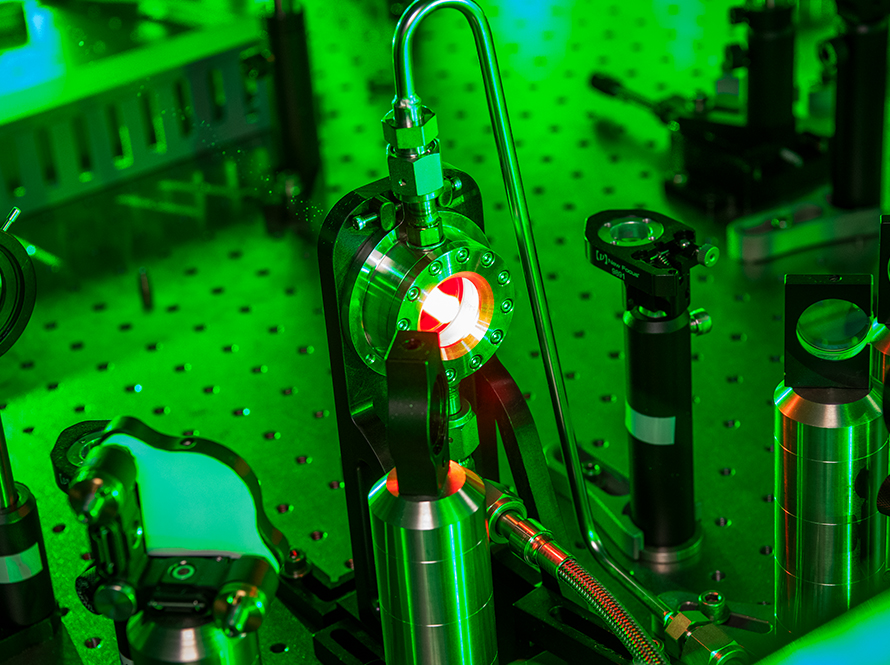 Laser light illuminates a BELLA Center LaserNetUS experiment that uses ultrafast X-rays and electrons simultaneously for “multi-messenger” studies of a shockwave’s effect on water, which behaves much like an inertial confinement fusion target. Very short (trillionth-of-a-second) and extremely bright pulses of electromagnetic, electron, and proton radiation enable the study of ultrafast, complex processes in inertial fusion plasmas. The generated proton beams are also of interest for fast-ignition studies in inertial-confinement fusion.